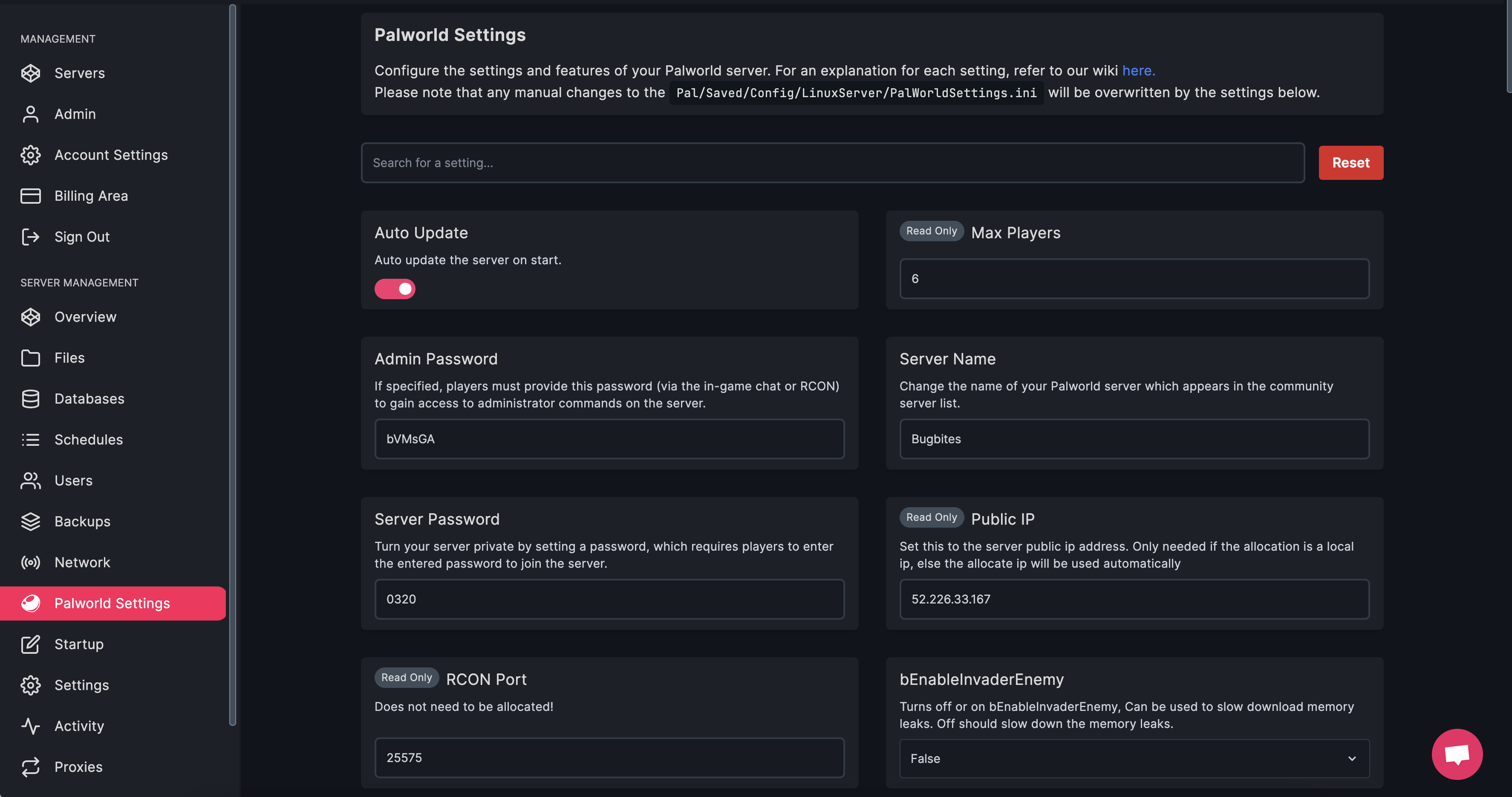 - Solution: Always stop the server before editing PalWorldSettings.ini file
